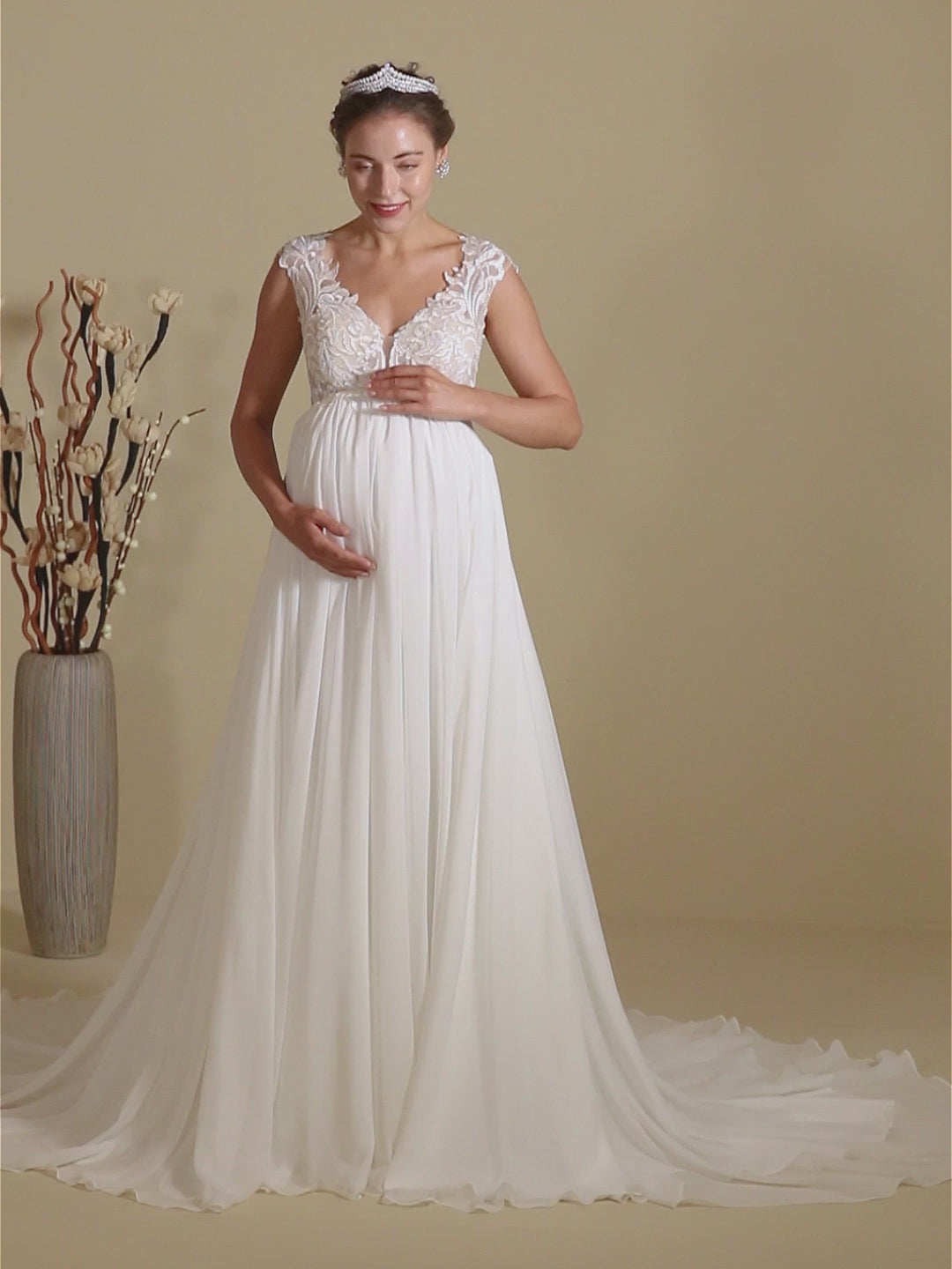 Das Brautkleid Cclaudia besticht durch seine A-Linie Form, die deine Figur perfekt in Szene setzt. Der Herz-Ausschnitt vorne verleiht dem Kleid eine feminine Note, während der V-Rücken einen Hauch von Verführung hinzufügt. Das Material aus Spitze und Chiffon sorgt nicht nur für einen angenehmen Tragekomfort, sondern unterstreicht auch den Boho Vintage Stil des Kleides.