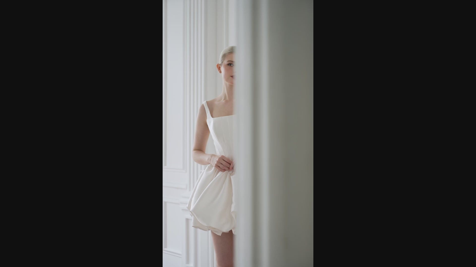 Die schmalen Träger und der gerade Ausschnitt unterstreichen den minimalistischen Look, während der hochwertige Stoff angenehm auf der Haut liegt und einen perfekten Sitz garantiert. Ein Kleid, das zeitlose Schönheit und moderne Couture mühelos verbindet.
